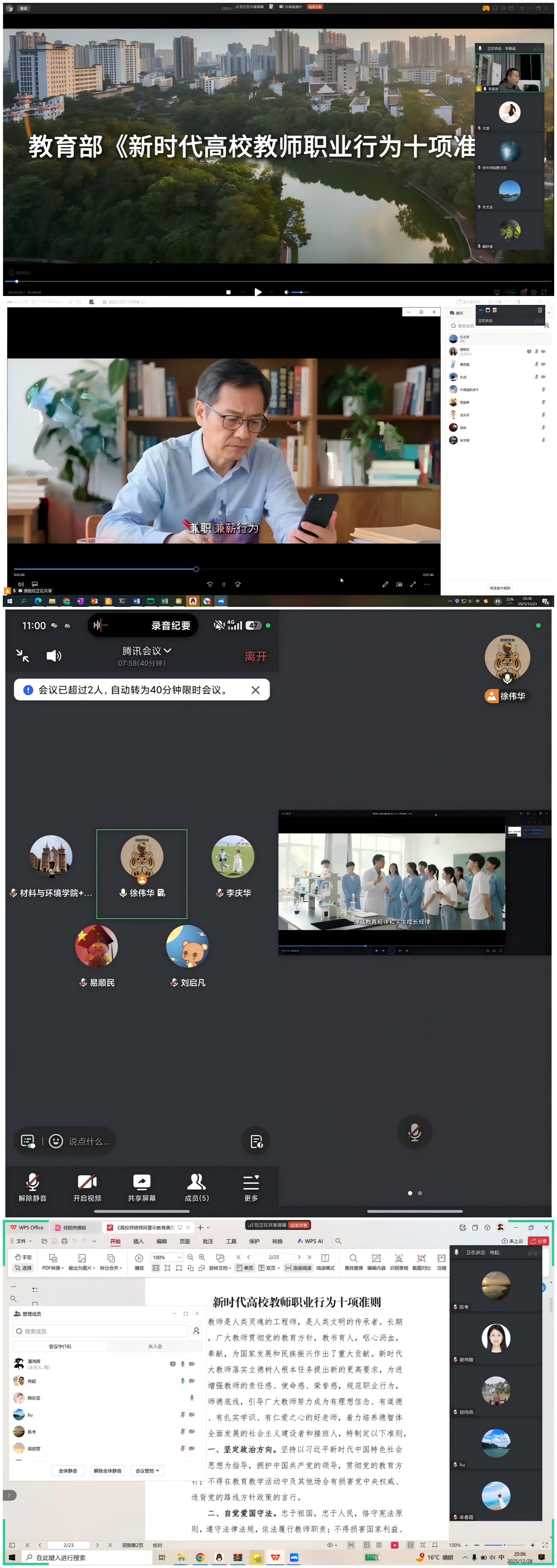 为持续加强新时代教师队伍建设,筑牢师德师风根基,12月下旬,学院组织智能材料与结构系、环境工程系、智能制造工程系、新能源材料与器件系全体教师,以系为单位集中开展2025年师德师风警示教育活动。本次活动采用线上线下相结合的方式,旨在通过学习教育与案例警示,引导全体教师明底线、知敬畏、守初心、担使命。